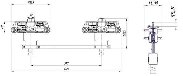 Токосъемник сдвоенный-01 21-485-14-01 120 2 16 8